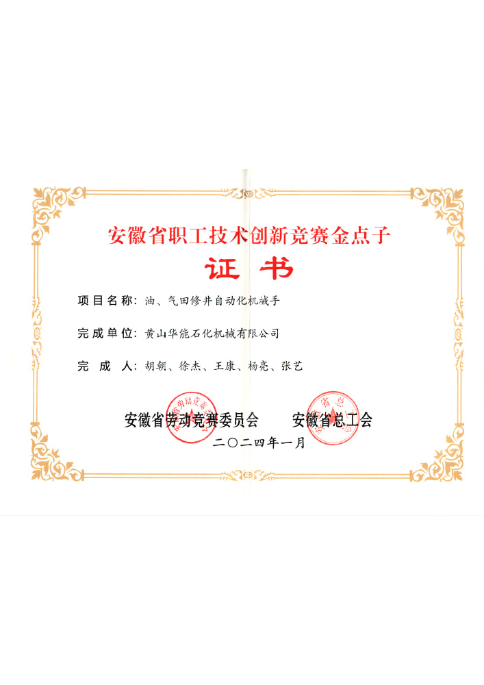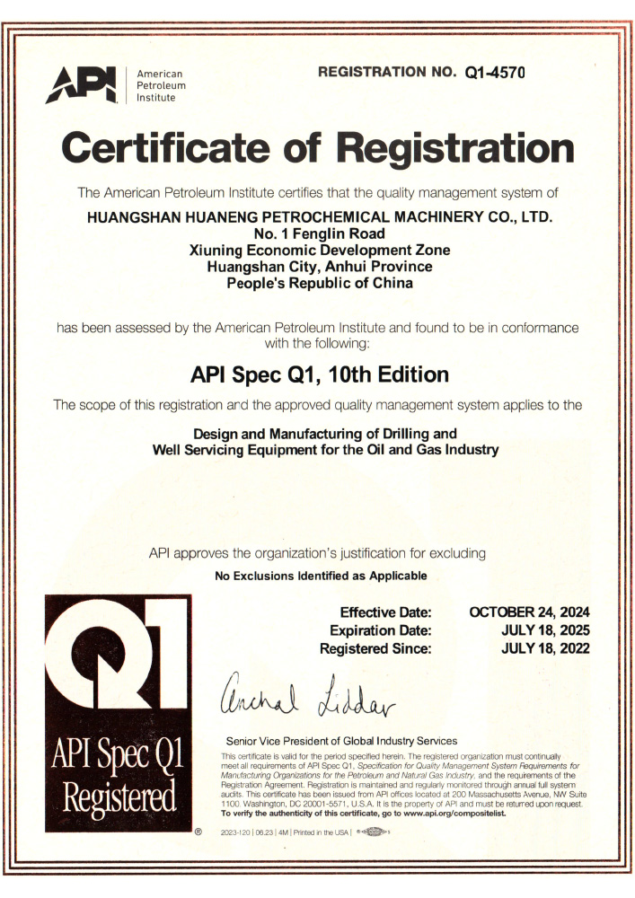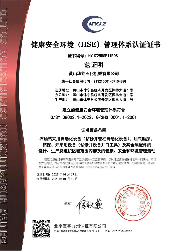 黄山华能石化机械有限公司是原国营江苏扬州石油化工机械厂,始建于1974年,1973年9月试制成功钻杆吊卡并在油田全面推广使用;2006年企业改制为扬州华能石化机械有限公司(简称“扬石机械”),体制的改革不仅给企业注入了巨大的活力,同时也提供了新思路和新目标;随着市场需求的提升和公司的不断发展,2015年钻修井管柱自动化设备研发项目应运而生,2017年钻修井自动化二层台成功投放市场使用;期间公司将生产基地搬迁至山清水秀的黄山,并于2020年正式更名为黄山华能石化机械有限公司,注册资金5000万元,自此华能翻开了崭新的一页,在做专、做精、做大、做强的道路上一步一个脚印的稳步向前发展。公司生产及试验检测设备配套齐全,功能完备。拥有···
