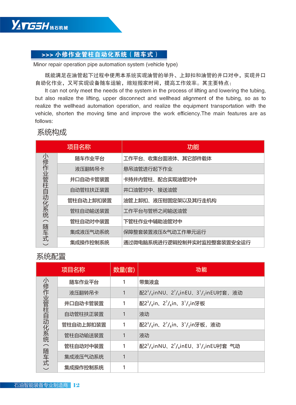 小修作业管柱自动化系统(随车式)