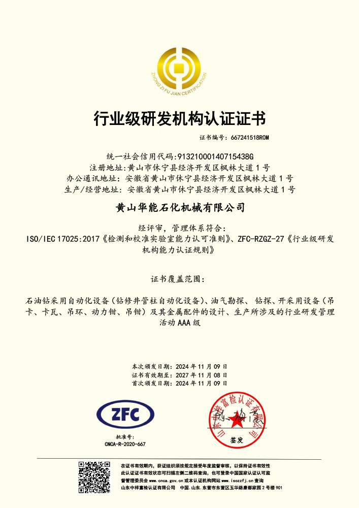 Certification certificate for industry-level research and development institution